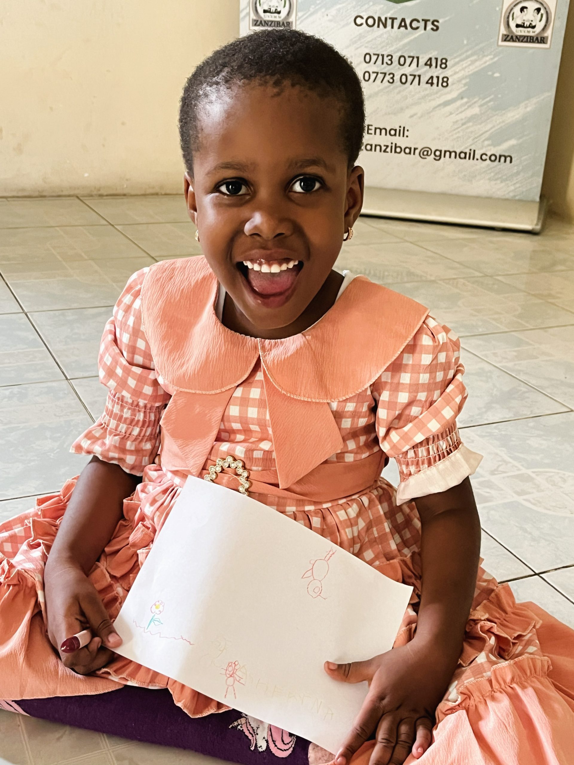 Elle est atteinte de spina bifida et ne peut pas marcher. Elle a déjà été opérée deux fois. Asfhaina est curieuse, joyeuse et pleine de vie. Nous avons dessiné ensemble – deux chats, un oiseau et un soleil. Le soleil avait un visage souriant, comme elle. Sa deuxième opération s’est bien déroulée, la guérison progresse, mais elle a encore besoin de médicaments, notamment en raison de crises d’épilepsie occasionnelles.