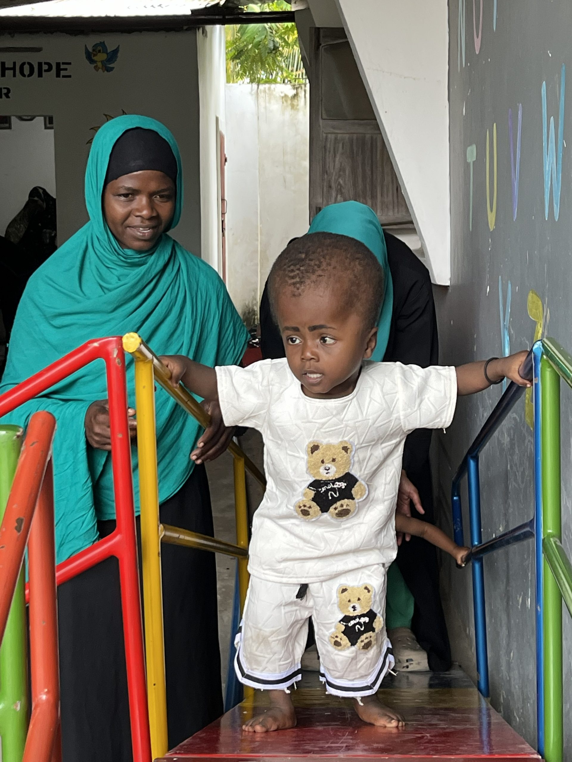 Une autre mère n’a que 18 ans. Son bébé a trois mois. Elle est venue de l’intérieur du pays à Zanzibar, car les opérations nécessaires ne sont pas gratuites là où elle vit. À l’hôpital près de la Maison de l’Espoir, ces interventions vitales sont gratuites pour les enfants, tout comme la kinésithérapie, les soins et l’accompagnement assurés par l’équipe de la House of Hope. Mais tout cela – ainsi que les médicaments, le matériel de pansement et l’alimentation – doit être financé par des dons.